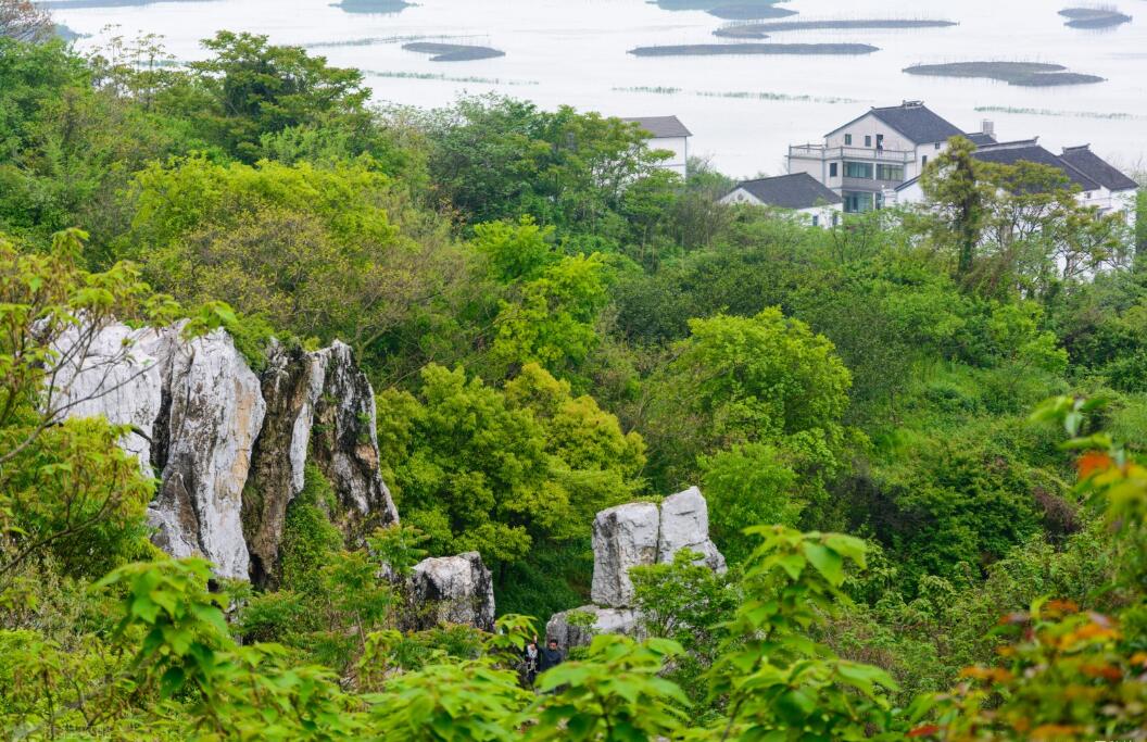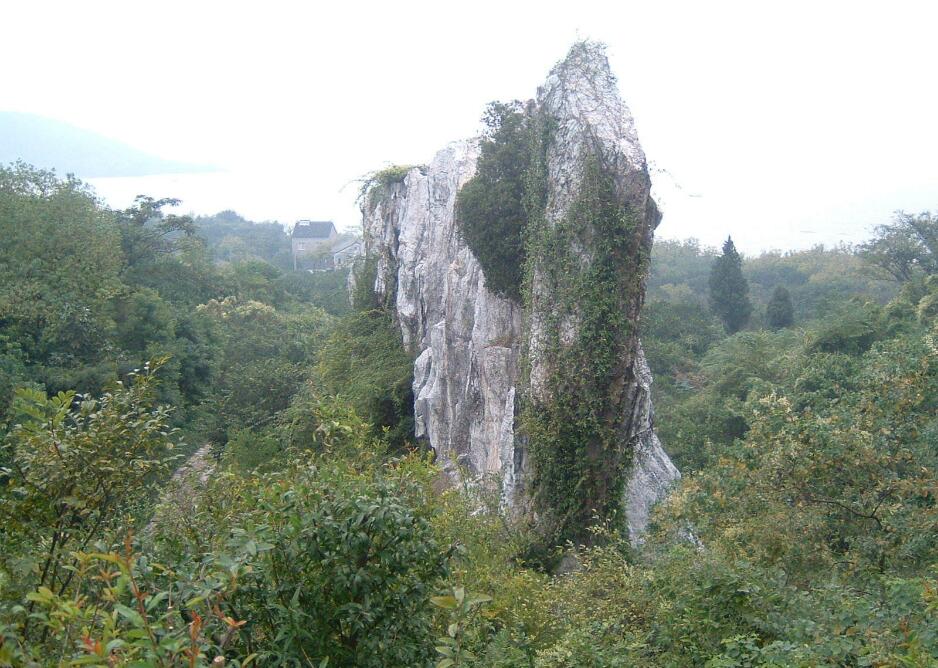 第二天推荐去爬山,从湿地附近的娘娘庙这有路上山。依次游览狮身人面石,陡峭的一线天,集合了四种不同地质年代岩石的四世同堂石,然后到达一处比较开阔的地方,脚下是古代的采石场“宋代花石纲遗址”,最后看一看形如大照壁的板壁峰,山上的景点就游览得差不多了。