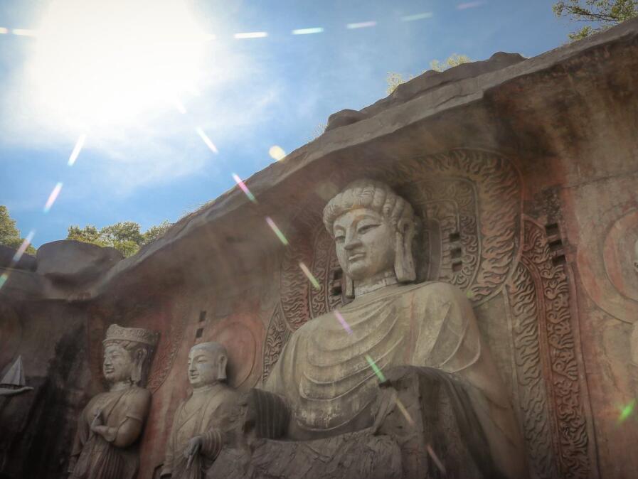 太湖仙岛位于鼋头渚内,是需要坐船前往的孤岛,岛上有道教仙宫和道、佛两教石窟塑像,其中道院内高18米的玉皇大帝像惹人注目。登顶岛上小山可环望四周,天气晴好时能看到湖面上的翩翩舟影,感受到太湖的浩淼之美。