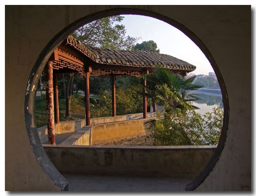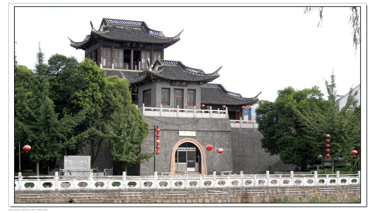 近河边,古时长廊,吹拉弹唱,琴声悠扬,歌声绵绵,是一个休闲好去处。也是一个古迹,有历史记载,以图为证。遗憾的是缺少香茗一杯在手,没有服务,可能是不收费的缘故吧!