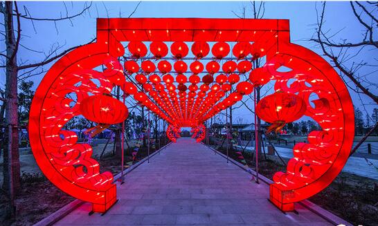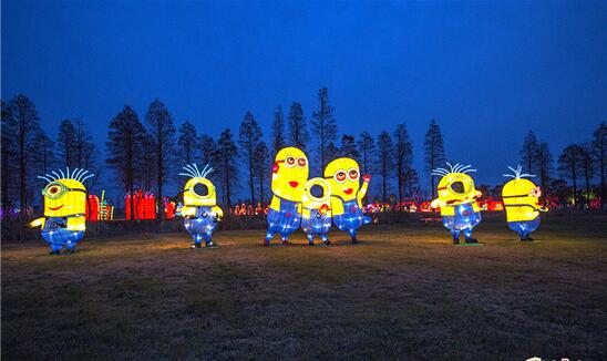 我们一进水慢城,映入眼帘的就是一大片红灯笼,穿过这个灯笼长廊,各种类型的彩灯灯组让我们大开眼界,据郭总介绍,这次水慢城的首届新春乐活灯展主要有两种类型的灯组,一种是从自贡请来的传统手工艺人在现场扎制的,这种轧制方法非常传统的,首先是美工设计画样,然后是艺人扎框架,还要裱糊。说起和秦淮灯盏的不同,郭总说虽然秦淮灯展近年来已经引入了一些自贡灯,但是像他们这么大规模的还是非常少见的!