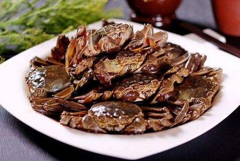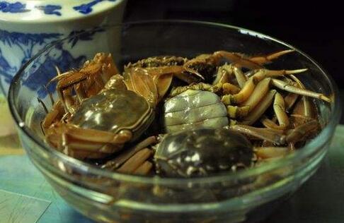 中庄醉蟹 此蟹为江苏兴化县的传统名产,历史悠久。因最早制作此蟹而又做得最好的为兴化县中堡庄一带,故人称“中庄醉蟹”。这种醉蟹,色如鲜蟹,放在盘中,栩栩如生﹔其肉质细嫩,味道鲜美,且酒香浓郁,香中带甜,营养丰富。当地民间制作醉蟹的方法很多,但基本工艺大同小异。一般专业化生产多采取封缸浸泡法,要经选料、浸养、干放、去绒毛、灌料、封缸、装坛、封口等工序。人称“不见庐山空负目”,又说“不食醉蟹空负腹”。