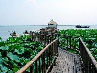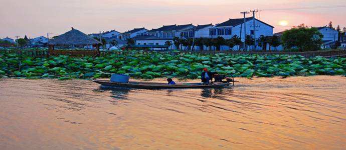 阳澄湖临近上海和苏州的阳澄湖,风景秀丽,环境优美。尤其以清澈的水面丰饶的物产闻名于世。这里湖面开阔,水质清澄,水草丰茂,是螃蟹生长的理想之地。 特殊的环境,使大闸蟹形成了与众不同的四大特点,一是青背,蟹壳成青灰色,平滑而有光泽;二是白肚,贴泥的肚脐、甲壳晶莹洁白,没有黑色斑点;三是黄毛,蟹腿的毛长而黄,根根挺拔;四是金爪,蟹爪金黄,坚挺有力,放在玻璃上都能八足挺立,双螯腾空。 “没有到过莲花岛,就没有来过阳澄湖!”。是来到阳澄湖的人说的一句常话。莲花岛位于阳澄湖中央靠北,是阳澄湖面佩戴的一颗翠绿的绿宝石项链,是陶渊明文中的现代世外桃源。阳澄湖莲花岛是餐饮、娱乐、会务、休闲为一体的休闲度假胜地,岛上有老字号的船餐、蟹庄, 进入乡村特色的莲花岛农庄,立刻感受到的是一种古朴与典雅。庄园别墅、木屋竹楼、清湖绿水、田野风光、乡村野趣、休闲悠然、生态农业、令人回归自然;桃园、桔园、枇杷园、葡萄园、梅园错落有致;看着湖对面的重元寺,聆听着安详的钟声,沉浸在缭绕的香火中,梦回五代十国,忘却城市里纷繁芜杂。 金秋时节,莲花岛更是成为海内外游客吃蟹的首选,来这里品蟹、买蟹、捉蟹感受的是旅游与美食、田园风光与特色水产的完美结合。一位专程从北京开着私家车举家来阳澄莲花岛的秦先生说,"阳澄湖畔风光美,捉蟹更比吃蟹乐"。阳澄湖莲花岛还成为苏州市旅游局安排的十大乡村生态旅游景点之一。