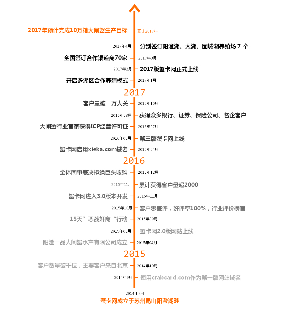 蟹卡网成立于二零一四年,以大闸蟹提货卡(礼品卡)的互联网销售、互联网电子卡的管理、 互联网客户高效便捷的综合服务为一体的经营模式,深得全国消费者青睐,积累了无数名企客户资源。经过三年的快速发展,已成为江苏大闸蟹行业最优秀的互联网销售和服务平台。