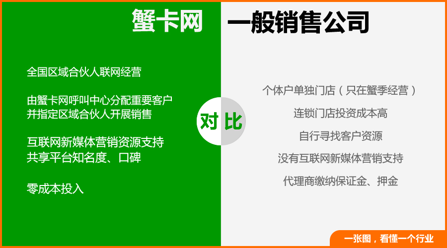 蟹卡网称之为的”区域合伙人“,可以理解成是代理商,但没有任何加盟费和代理费。除合伙人自身获得的客户外,还共享平台分配的本地客户。