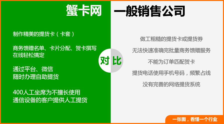 蟹卡网提货卡(礼品卡)可实现在线批量订购,批量分配,分单快递,贺卡打印,免去客户商务馈赠流程的种种麻烦,为客户在线管理商务馈赠,省时实力。