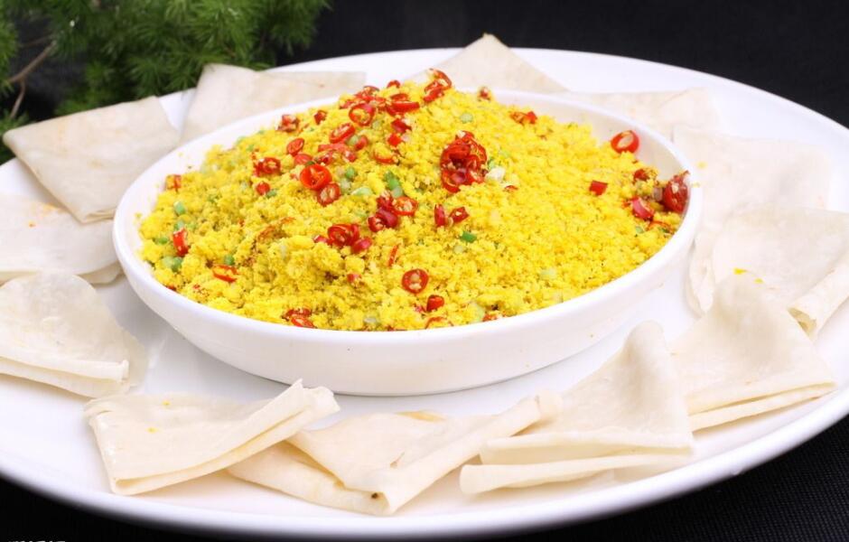 “每到秋蟹肥的时候总经不住诱惑,但胆固醇偏高的人伤不起啊!每次做豆浆滤提的豆渣富含纤维,它是一种不能被人体消化的碳水化合物,但对于人体却是不可或缺的营养素,对降低胆固醇起着积极作用,那我们综合一下,来个鲜美的豆渣炒蟹粉,让豆渣吃出蟹的味道!”