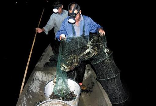巧的时候一个晚上能捕到一二十只大闸蟹,这也是在西北风中等待的最好回报。现在养殖技术已到了相当高的程度了,经过科学养殖的大闸蟹不但个大,而且一样味美可口。所以入秋后的阳澄湖里少了渔火,而沿湖的公路上却多了快速移动着的车灯,那是慕名而来的品蟹的客人,汇成了秋日阳澄湖一道无限的风光。