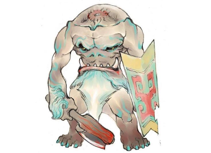 可是,刑天并没有跌倒,他把两只乳头当眼睛,肚脐当嘴巴,一边破口大骂,一边还舞动两柄巨斧杀向黄帝。黄帝见状大惊,掉头就逃。黄帝逃,刑天就追。黄帝一路逃,刑天一路追,一直到东海。黄帝从东海逃进长江,刑天也一路追到长江。