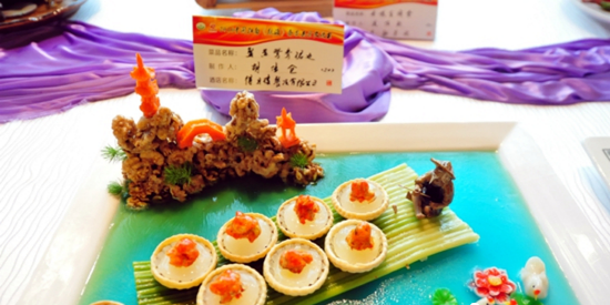 “今天这么多道菜品,给我的一个感觉,是创新意识都非常强烈”。最终中国烹饪大师蒋晓初,对当天展出的参赛菜肴给出了很高的整体评价,然后指着“双味桂鱼”说“这道菜在传统苏帮菜“菊花桂鱼”的基础上进行创新,菜芯排成圆形,中间扣上桂鱼丝,还用到香菇,做成树杈形状,无论是颜色的搭配,还有烹调方法的使用,都十分合理。”