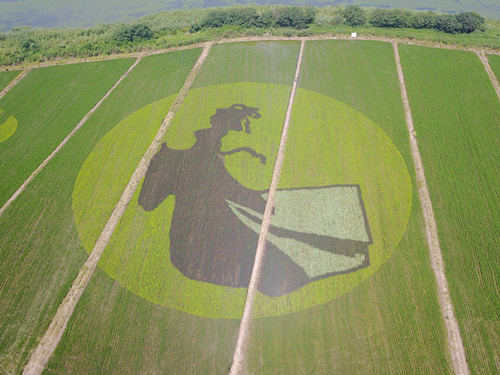 伴随着艺术节开幕,阳澄湖彩色稻田也迎来了第一批客人。刚一入莲花岛蛇头角咀,只见一幅色彩丰富而又别具一格的田野风光就呈现在眼前,由“嫦娥奔月”、“大闸蟹”、“阳澄清莲”等水稻图案组成的80亩彩色稻田宛如一幅充满艺术气息的美丽画卷,引得在场所有人连连称奇。