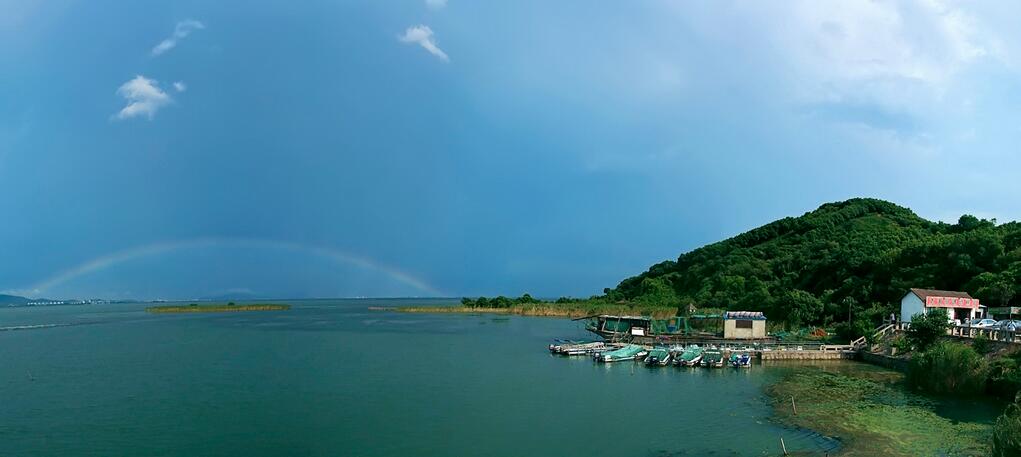 太湖在我国的淡水湖泊中排名第三。拥有秀丽的新月状水体,南岸是及其漂亮的圆弧形岸线。