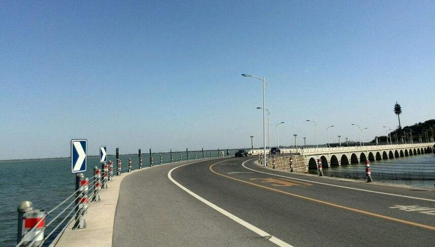 苏州环太湖公路(度假区段)工程是我市的一项民心工程、实事工程、城市形象工程,由吴中区交运局负责建设。项目北起吴中区与苏州高新区的分界点,南至蒋墩转盘处接舟山路,全长23公里;工期历时40个月,涉及原老路改造拓宽改建、路基路面、桥涵、雨水排水、交安设施、照明、景观绿化、公交候车亭等工程内容。