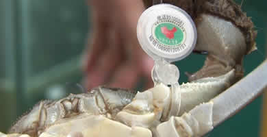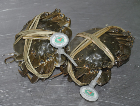 现在阳澄湖大闸蟹已经成为各个商家的聚宝盆,只要把自己的蟹标榜为这样的大闸蟹,那么价格就可以翻倍上涨,记者走访了解防伪扣花样百出,甚至有的蟹壳上都出现了“阳澄湖”字样,再加上最流行的锁扣防伪标志,真是让消费者难以捉摸。