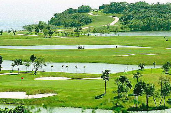无锡太湖国际高尔夫俱乐部位于无锡市西南太湖国家旅游度假区(马山)的南端,这里离著名的灵山大佛景区仅约3公里,是一座湖滨与山地相融的18洞、72标准杆球场,球道总长为7331码。独特的地形地貌使前后九洞球场各自拥有迥异的景观特色,前九洞濒临太湖,地势平坦,水面众多,为江南湖滨水乡球场景观;后九洞座落于青山之间,峻岭之上,上下球道交错变化,为典型的山地球场景观。这里的球道设计以中高水平球手为主要群体,兼顾初学者的需求,对于职业球手则更具挑战性。前九洞球手在领略水乡风情的同时需挑战和征服不同难度的水障碍,1、2、6、7号洞与山地丘陵的结合,使场地景观更加丰富;后九洞球道穿行于山谷之间,绵延于峻岭之上,多变的球道景色激发球手发挥精湛的球技和敏锐的空间判断能力。俱乐部内种植有大片桔树、桃树,特别是球场内千余棵正当盛期的杨梅,每到夏天树上挂满紫红的硕果,在这里信步湖畔,也是一种融于大自然的享受。
