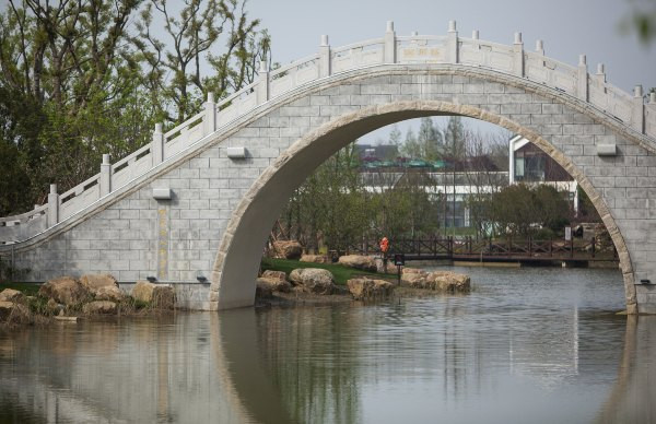 来到太湖园博会,穿花拂柳前行,两座虹桥在前方遥相呼应,那便是巧借了甪直与无锡的地标桥梁之名的清江桥和梁溪桥,其实园区内的拱桥飞梁大多如此,与相应的城市展区彼此映衬,让人仿若行走在微缩的吴越水乡之间,更巧妙地点出主题:“印象江南”。