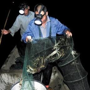 夜晚桅灯下的捕蟹人