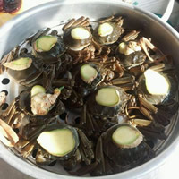 大闸蟹做法之咸肉蒸蟹